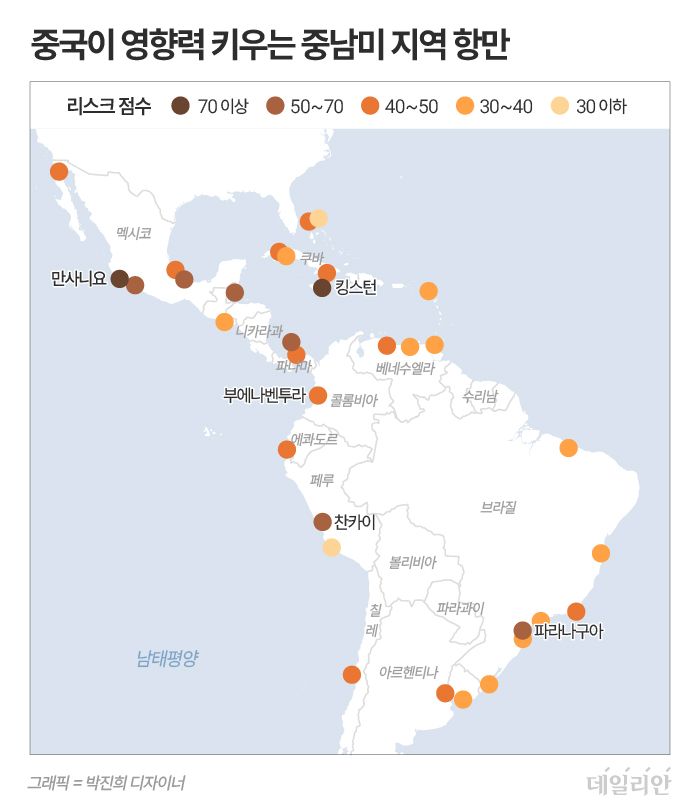 Pelabuhan sebanyak 31 tempat yang menyebar dari Meksiko hingga Chili di seluruh Amerika Selatan terhubung secara langsung dan tidak langsung dengan Tiongkok, sehingga berada dalam pengaruh Tiongkok, demikian dilaporkan Financial Times Inggris (CSIS) dengan mengutip laporan Institute for Strategic and International Studies (CSIS) Amerika Serikat pada 24 Agustus kemarin. Laporan tersebut juga mencakup tujuh pelabuhan yang dimiliki oleh perusahaan utama keluarga Li Ka-shing, pendiri CK Hutchison Group, sebuah konglomerat Hong Kong.