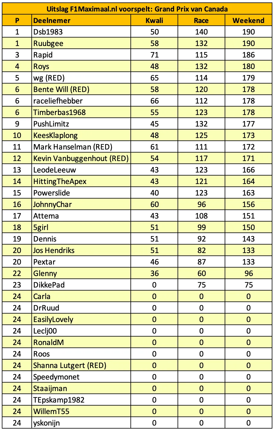 Weekendscores - Grand Prix Kanada: