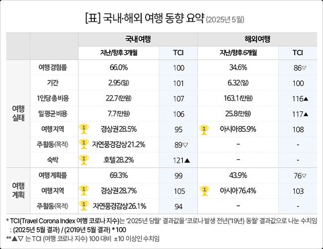 Masa menginap untuk perjalanan domestik rata-rata adalah 2,95 hari. Total biaya adalah 227.000 won, atau 77.000 won per hari, yang hampir sama dengan tahun lalu (222.000 won, 74.000 won).