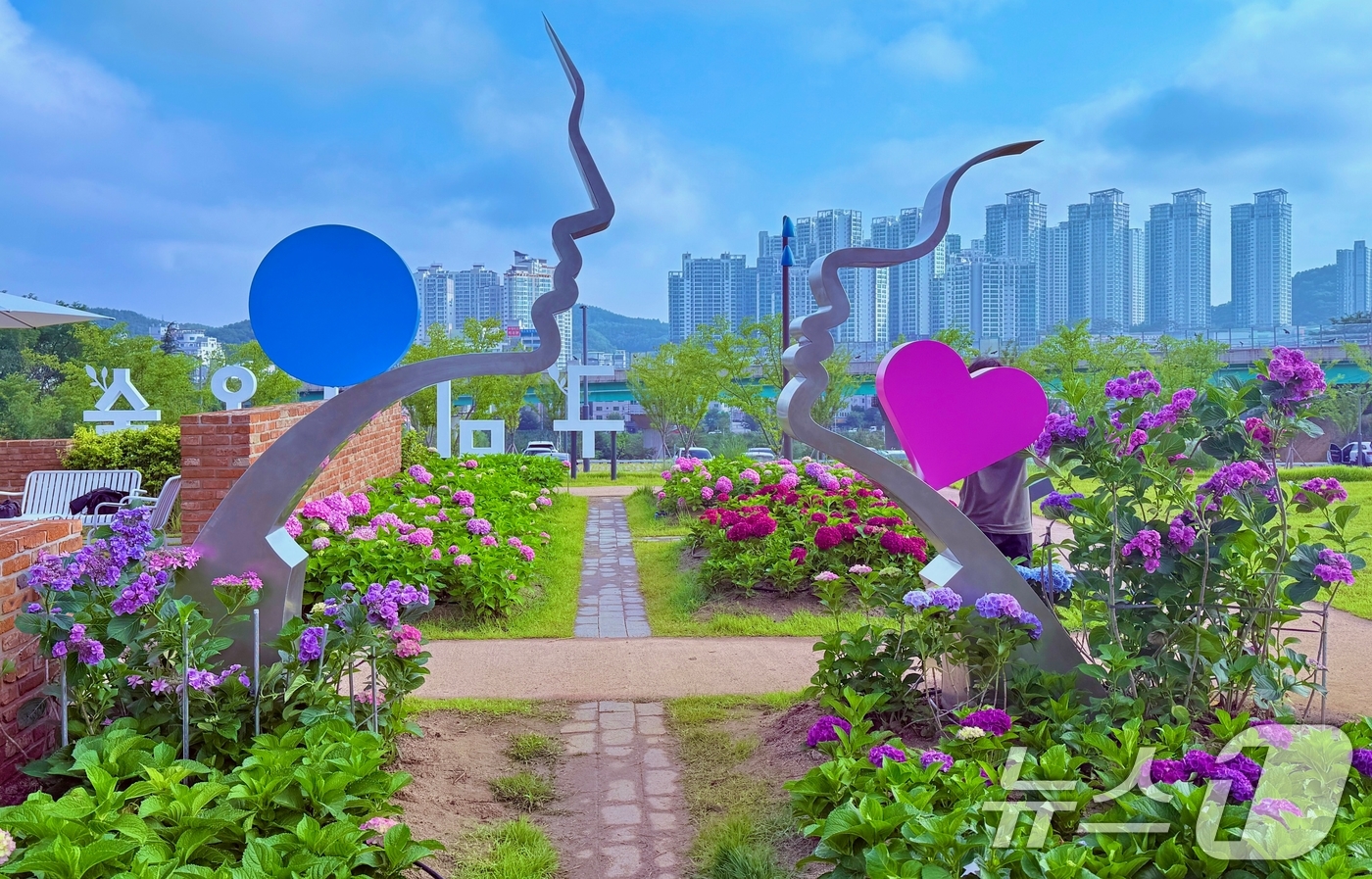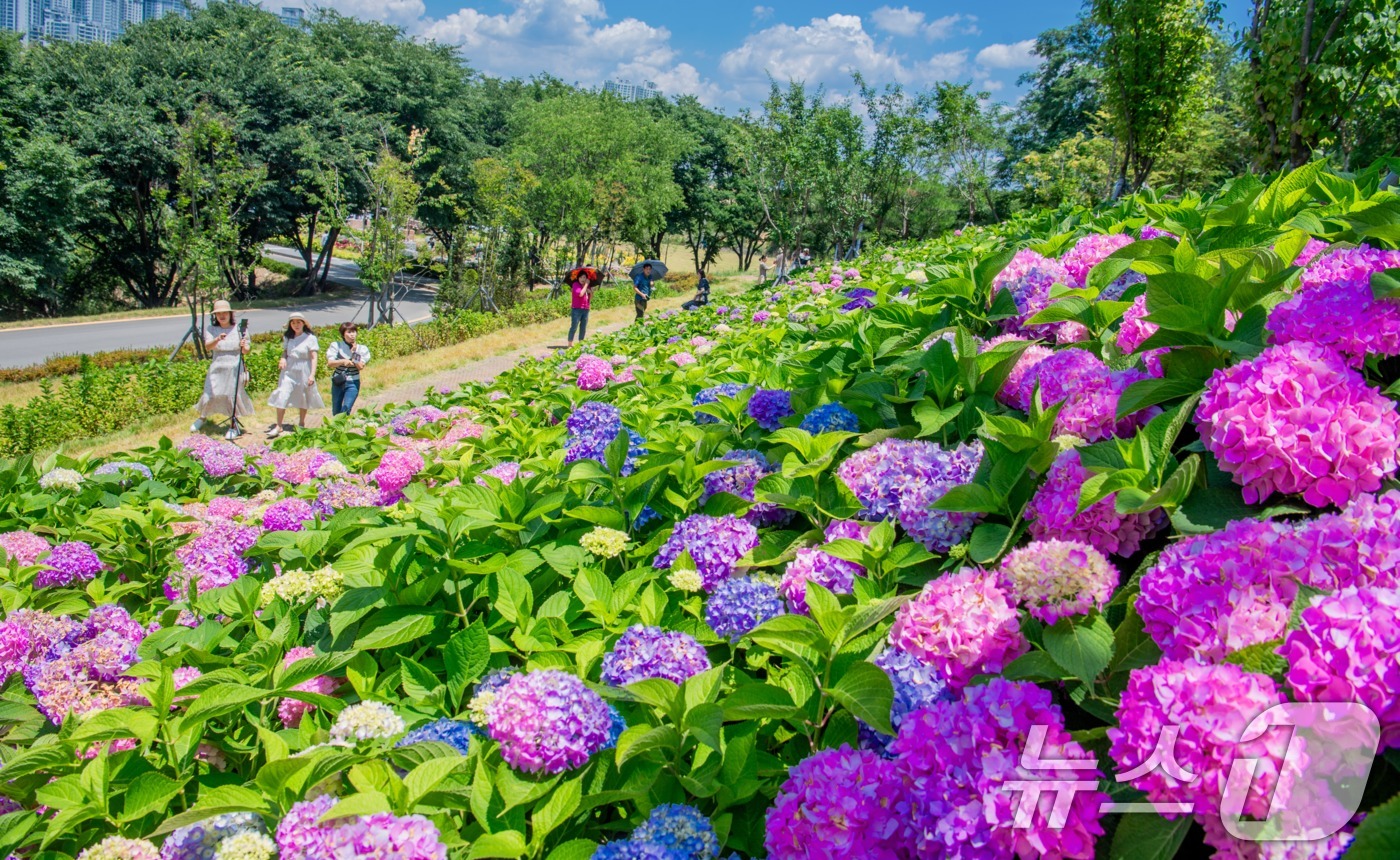 (구미=Korean Rumit) Penulis Jung Woo-yong = Kota Gumi melalui tempat pembuangan sampah Yangpo yang telah diubah menjadi 'Taman Hydrangea Daon' kini dipenuhi dengan bunga hydrangea yang sedang mekar, menarik perhatian warga kota.