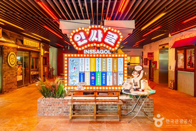 Ruang multikultural Anhyeok-dong 4th lantai memiliki Inssagol, sebuah ruang retro yang berkonsep pada dekade 1980-1990-an. Tempat ini menampilkan tanda-tanda lama, mural dinding, dan toko-toko kecil di lorong-lorong, menghidupkan kembali tampilan lama Anhyeok-dong menjadi destinasi baru untuk foto "hidup". Restoran disusun di tepi dan meja-meja ditempatkan di tengah untuk merasakan suasana pedagang kaki lima (yajang) outdoor. Sebanyak 10 tempat makan seperti 'Shinsadong Indon', 'Onddeok Chicken' dan lainnya, hadir di sini sehingga Anda dapat mencicipi berbagai menu seperti pizza, ayam goreng, tteokbokki, sup nasi, dan sushi dalam satu lokasi. Saya juga merekomendasikan untuk mengunjungi pasar lepas angin (fleamarket) yang berlangsung di lapangan umum lantai 1.