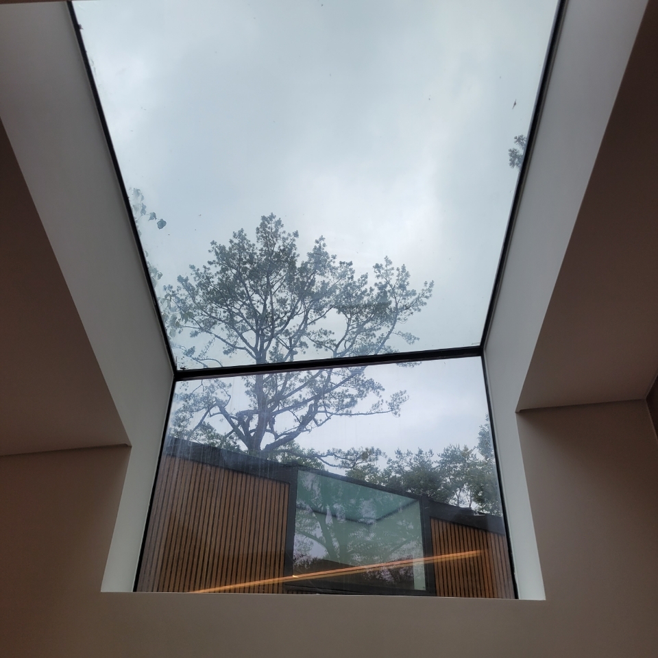 Di dalam kamar ada dua atap terbuka yang memperlihatkan langit, dan di tempat di mana televisi biasanya berada, terdapat pemutar LP dan speaker Marshall, serta tempat tidur gaya hotel, yang semuanya sangat baik untuk beristirahat.