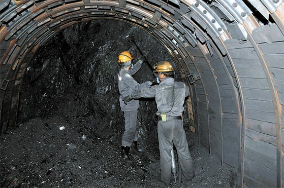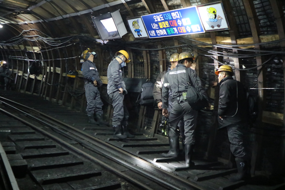 Para penambang yang bekerja di bagian terdalam tambang Dongdeok di Dongkogye-ri, Dojeong-eup, Samcheok-si, Provinsi Gangwon. Foto oleh Pak Jin-ho.