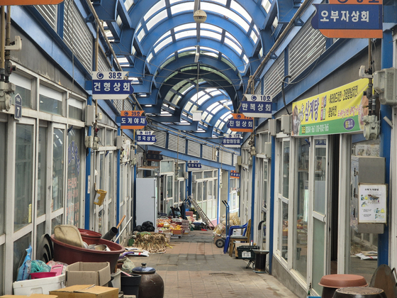 28 sore, pasar tradisional Dokejeondu yang berlokasi di dekat stasiun Doke, kota Samcheok, provinsi Gangwon, ditinggalkan pengunjung dan tampak kosong. Jurnalis Park Jin Ho melaporkan.