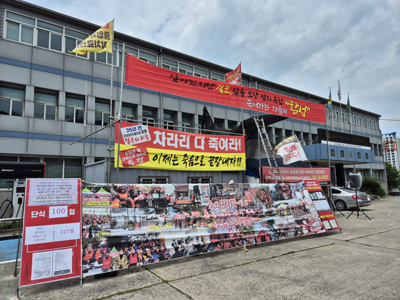 28 sore di depan kantor pusat Pertambangan Batubara Doke di Desa Doke, Kecamatan Tokted, Kota Samcheok, Provinsi Gangwon, 'Komite Gabungan untuk Perlawanan Penutupan Perusahaan Batubara Korea dan Perjuangan Bersama untuk Industri Alternatif' sedang melakukan tenda aksi. Foto oleh Park Jin-Ho.