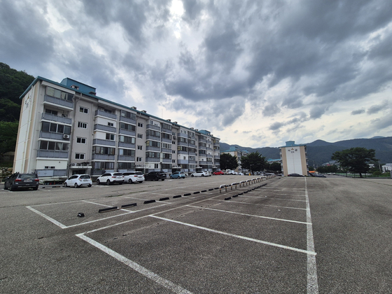 28 sore, Parkiran Apartemen Sama Sama di Desa Dokye, Kota Samcheok, Provinsi Gangwon terlihat kosong. Apartemen Sama Sama adalah apartemen yang dihuni oleh para penambang. Jurnalis Park Jin Ho.