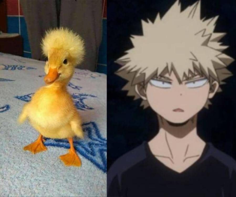 4. Rambut si burung bebek bisa mirip Bakugo, ya? Sangat lucu sekali!